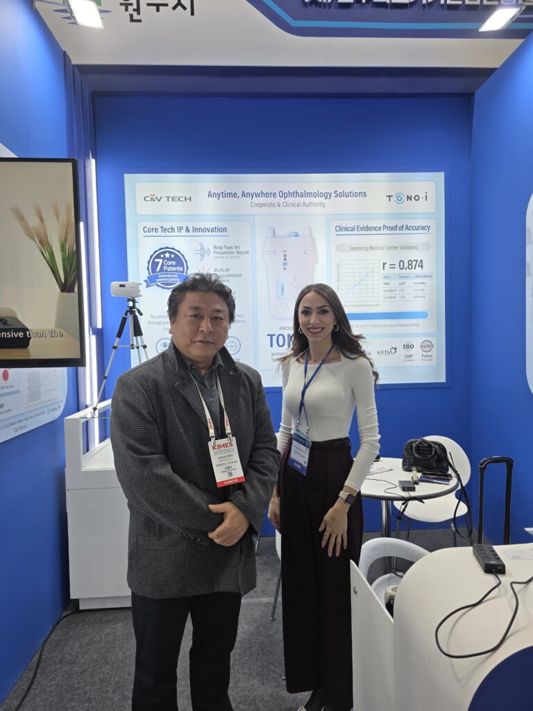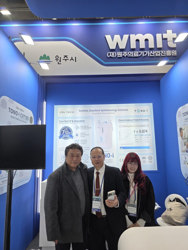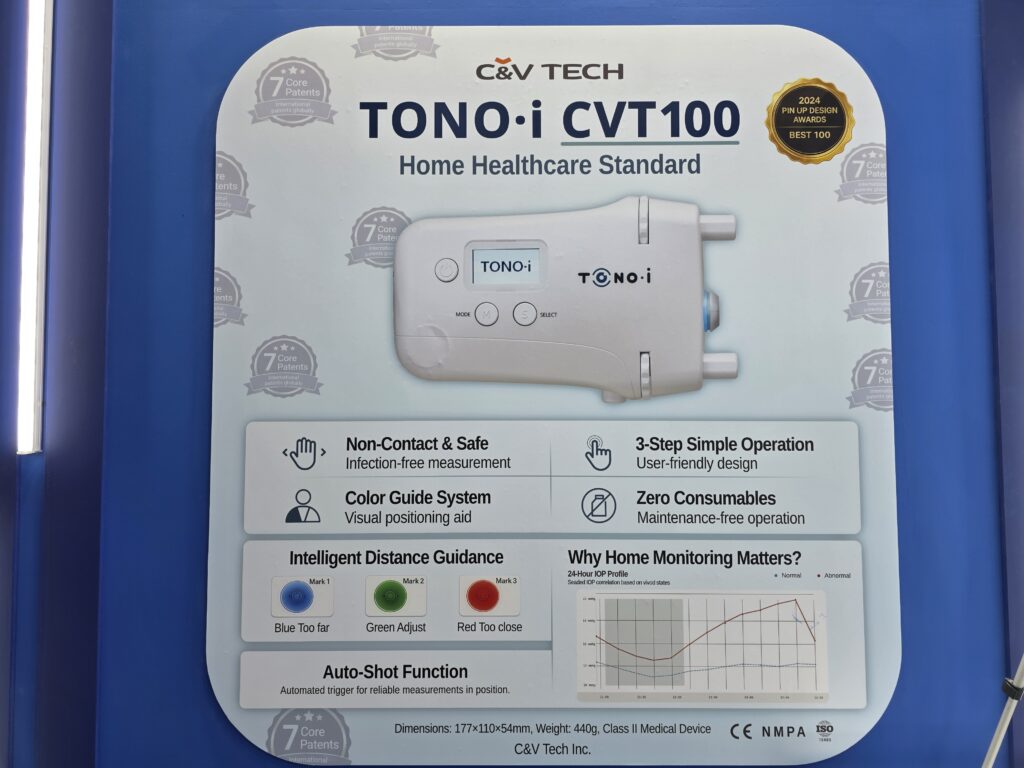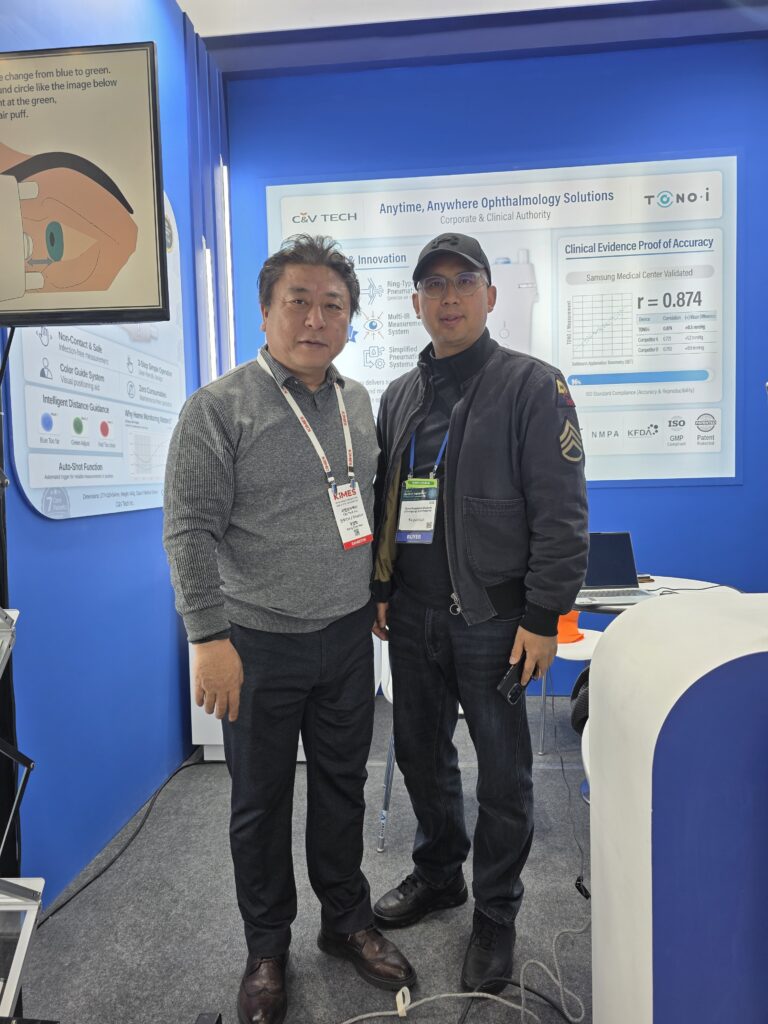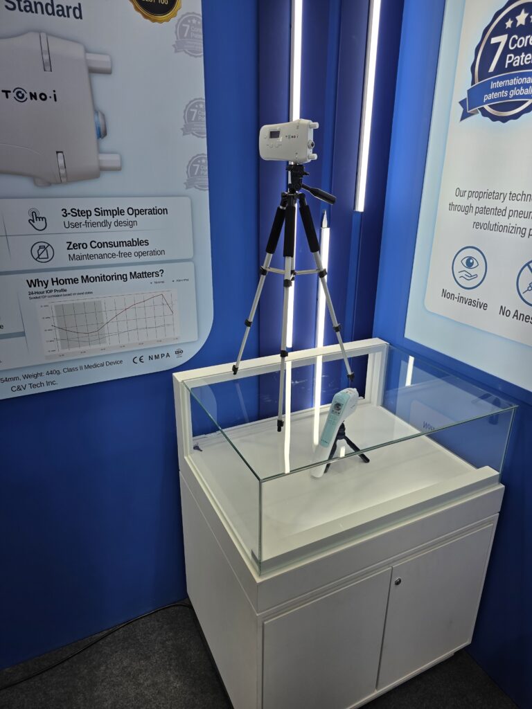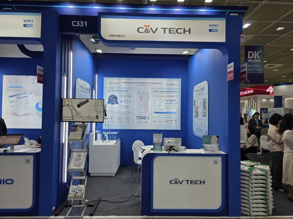 전시 기간 동안 씨엔브이텍 부스에는 끊임없이 방문객들의 발길이 이어졌습니다. 특히 주력 제품인 비접촉식 휴대용 안압계 ‘TONO-i 에 대한 관심이 뜨거웠습니다.