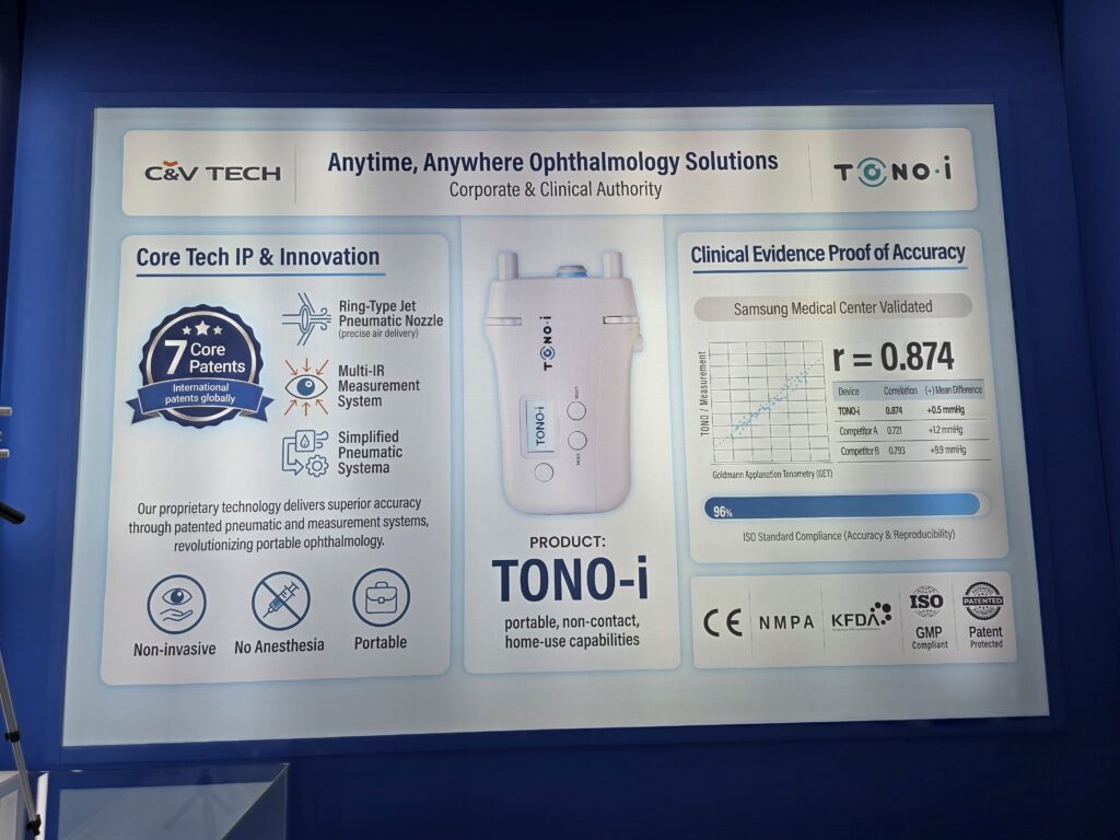 씨엔브이텍은 **’Anytime, Anywhere Ophthalmology Solutions’**라는 비전 아래, 의료진뿐만 아니라 환자들도 언제 어디서나 정확하게 눈 건강을 체크할 수 있는 혁신적인 기술을 선보였습니다.